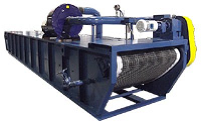 Dirty liquid is fed into the filter through a low velocity inlet distributor. As the air is evacuated beneath the filter bed, a high vacuum pressure differential across the media is created. The contaminants are intercepted to form a cake and as the cake becomes thicker and less permeable, a pool is formed in the bed of the filter. As the pool gets deeper, the level control float energizes the conveyor drive system and introduces a small section of fresh media at one end and discharges the contaminants and spent media at the other end of the filter. The clean liquid flows through the clean outlet to a separate clean tank for delivery back to the process.
